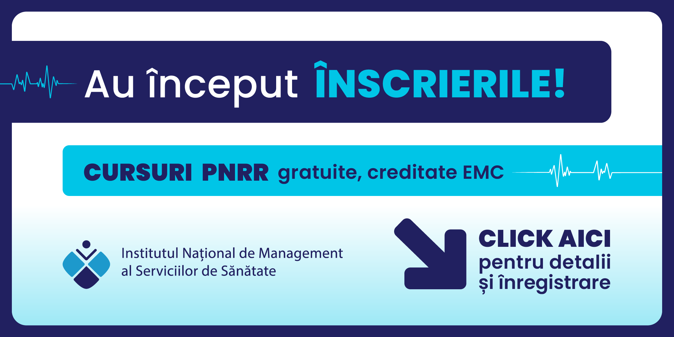 Ca parte în aplicarea Planului Național pentru Redresare și Reziliență (PNRR), Ministerul Sănătății, în colaborare cu Organizația Mondială Sănătății, organizează o serie de cursuri în domeniul sănătății care vor fi derulate prin Institutul Național de Management al Serviciilor de Sănătate. Cursurile se adresează tuturor profesioniștilor din domeniul sănătății și acoperă următoarele tematici: